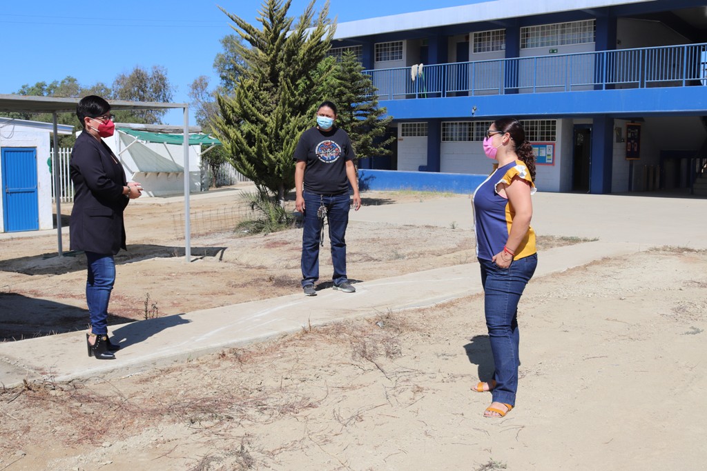 PLAYAS DE ROSARITO, BC.- Una comitiva de la Secretaría de Educación (SE) realizó visitas a planteles de la zona sur del municipio de Playas de Rosarito, a efecto de supervisar las condiciones físicas en que se encuentran, ante la ausencia de alumnos y planta docente por las clases a distancia, a causa de la pandemia del Covid-19.