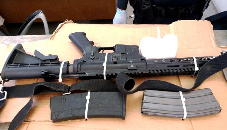 El sospechoso afirmó ser vendedor de ropa, aunque los propietarios de la casa dijeron no conocerlo; y al revisar la mochila los agentes encontraron un arma larga color negro con la leyenda CMMG MK-4 Multi y en la culata la leyenda Stag Arms; con portafusil negro y dos cargadores abastecidos, uno negro de plástico con 29 cartuchos y otro metálico gris con 22 cartuchos, sumando un total de 51 cartuchos útiles; además de un pasamontañas negro.