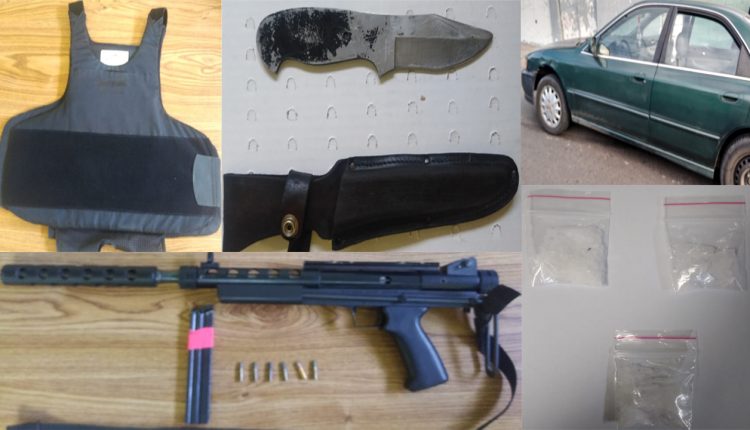 Tijuana.- Cuatro presuntos delincuentes fueron detenidos por la Policía Municipal, en posesión de un arma de fuego, armas blancas y droga.