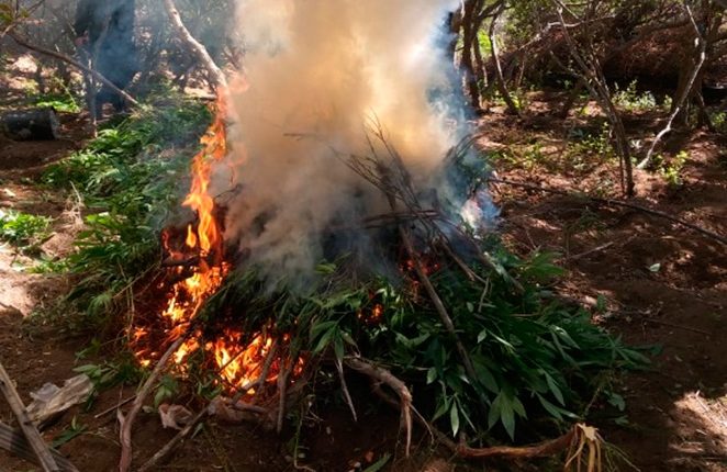 Para dar fe del hallazgo, destrucción y quema del enervante, se contó con la presencia de las autoridades correspondientes.
