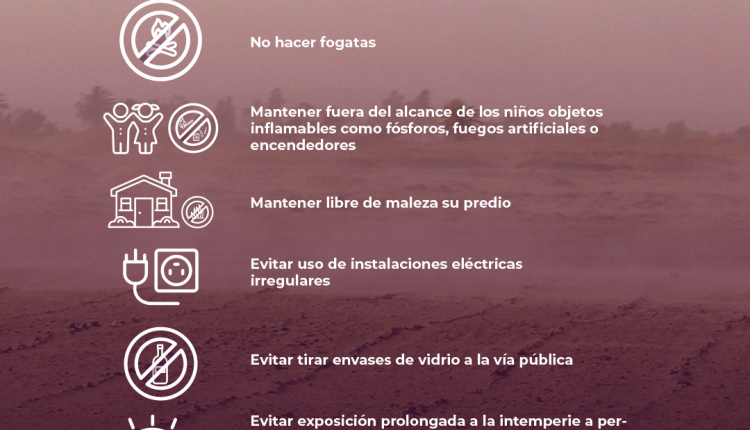 Lo anterior, afirmó el titular de la dependencia, Aroldo Rentería Quezada, provocará bajos niveles de humedad relativa, cambios de dirección de vientos predominantes del Este e incremento temporal en temperaturas máximas de 35 a 40 grados centígrados a partir del jueves hasta la noche del viernes.