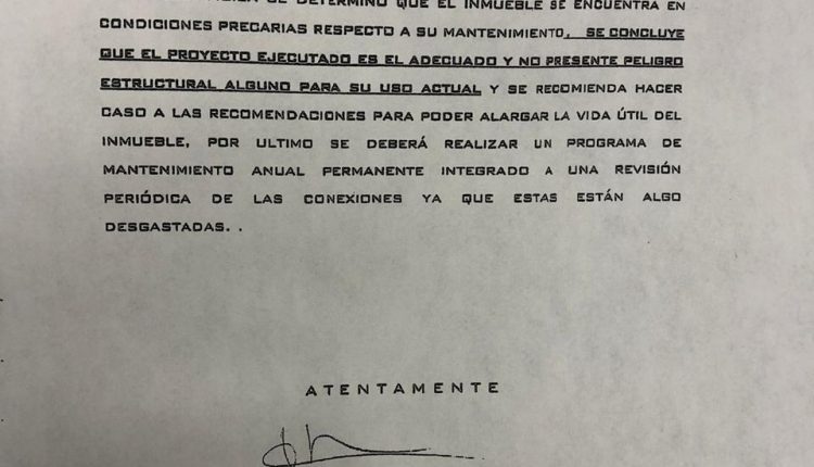 Además aseguró que el sistema estructural de la plaza de toros, cumple con las normas técnicas complementarias, así como la resistencia de cargas gravitatorias y accidentales. El edificio desempeña correctamente las funciones normativas y capacidades estructurales para su uso y no presenta daño alguno.