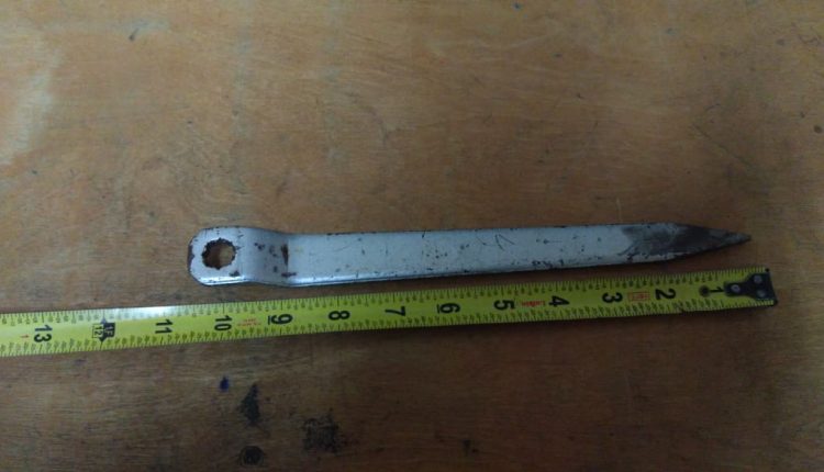 Por lo que procedieron a la intervención y le comunicaron que sería presentado ante el juez cívico por su comportamiento pero que antes le sería efectuada una inspección a su persona, y encontrándole en la bolsa derecha del pantalón deportivo que vestía un arma punzo cortante con mango blanco con hoja de 9 centímetros.