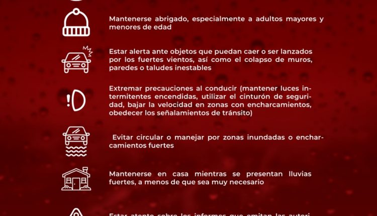 Asimismo, la Dirección de Protección Civil Municipal, señaló que aunado a las precipitaciones, se esperan ráfagas de viento de hasta 25 millas por hora; por lo que se recomienda evitar salir de casa de no ser necesario.