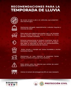 Por su parte, el Director de Protección Civil Municipal, Aroldo Rentería Quezada, manifestó que pero a que hasta el momento, se ha registrado saldo blanco, se exhorta a la ciudadanía a evitar salir de sus viviendas si no es necesario, así como atender las indicaciones de evacuar en casos de emergencia, en caso de requerirlo.