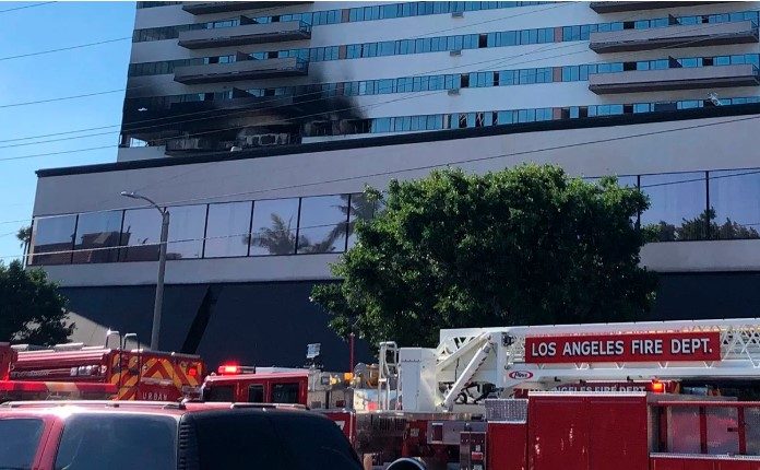 Los Ángeles. Un incendio estalló el miércoles en un edificio residencial de 25 pisos en Los Ángeles y al parecer un número indeterminado de personas saltó por las ventanas, informaron las autoridades.
