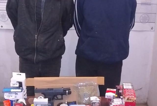 Playas de Rosarito.- Dos hombres fueron detenidos la noche de ayer tras robar con violencia una tienda de auto servicio y una camioneta en la colonia Reforma.