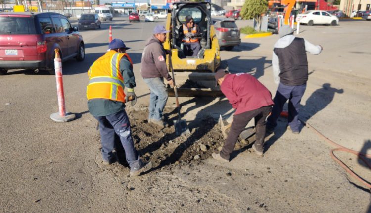 Playas de Rosarito.- Con el propósito de favorecer el flujo continuo del tráfico en el retorno del puente machado; el Gobierno Municipal, encabezado por Araceli Brown Figueredo, a través de la Secretaría de Administración Urbana y la Dirección de Servicios Urbanos, realizó trabajos de bacheo, luego que tras las pasadas lluvias se generaron desperfectos en la carpeta de rodado.