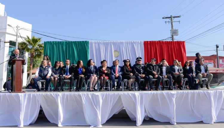 Playas de Rosarito.- La Presidente Municipal, Araceli Brown Figueredo, encabezó los actos conmemorativos al Día de la Bandera, en el que estuvo acompañada por miembros del Gabinete Central, así como también las y los Regidores del VIII Ayuntamiento.