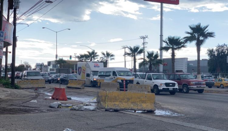 Playas de Rosarito B.C, – En las lluvias del pasado mes de diciembre del 2019 se abrió un socavón en el cruce del Blvr. Benito Juárez y Blvr. Sharp, el cual ha ocasionado el cierre de 1 carril de circulación y encharcamientos tras la más mínima lluvia que caiga en el municipio.