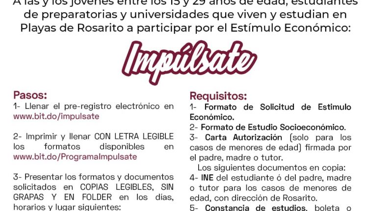 Playas de Rosarito B.C- El Instituto Municipal de la Juventud en Playas de Rosarito lanza oficialmente la convocatoria para jóvenes entre 15 y 29 años de edad estudiantes de preparatoria y universidad que vivan y estudien en el municipio.