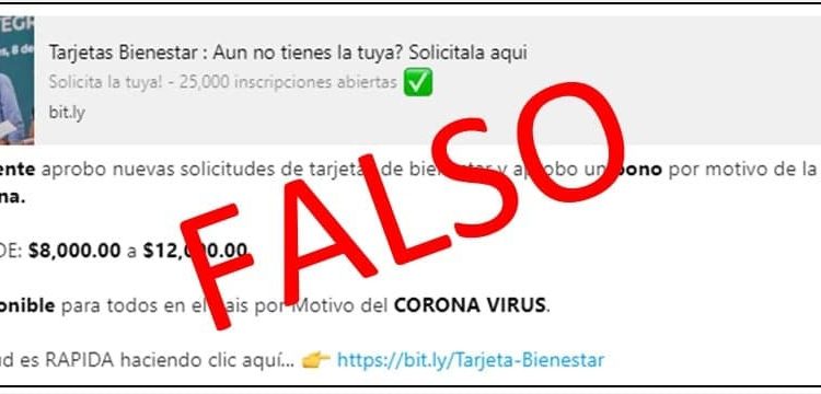 MEXICALI.- La Fiscalía General del Estado (FGE) con acciones de inteligencia cibernética detectó en redes sociales una página en donde se informa supuestamente de la entrega de tarjeta y bono “Bienestar”, por motivo de la cuarentena COVID-19.
