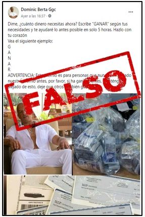 El Comisionado de la Guardia Estatal de Seguridad e Investigación, Carlos Alberto Flores, señaló que los delincuentes cibernéticos envían una cadena de mensaje, la cual es difundida por páginas que pretenden estar asociadas con famosos actores de Hollywood, el mensaje promete regalar dinero a cambio de compartir en diferentes grupos.