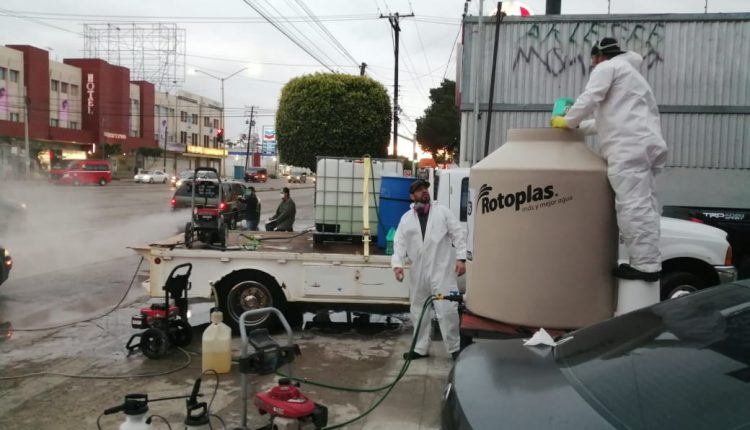 Tijuana.- A causa de la pandemia que azota el mundo y del incremento de casos confirmados por covid-19 en la ciudad. Estudiantes y profesionistas Tijuanenses decidieron actuar y poner su granito de arena, por lo que en el Bulevar Diaz Ordaz esquina con Ermita sur, montaron un punto de desinfección, con sus propios recursos, para automóviles particulares y de transporte público; cualquier conductor que deseara desinfectar su vehículo, lo rodeaban con mangueras a presión para aplicar el líquido.