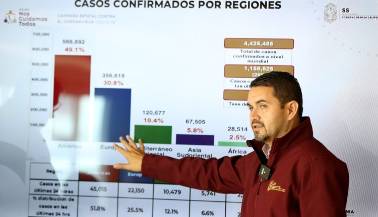 Tijuana. – De acuerdo a la información brindada por el Secretario de Salud en el estado, hasta la mañana de este lunes 18 de mayo 2020 existe un total de 3,325 casos positivos de COVID-19, de los cuales 1,568 se encuentran en Tijuana, 1,407 en Mexicali, 153 Ensenada, 132 Tecate, 46 Rosarito y 19 San Quintín.