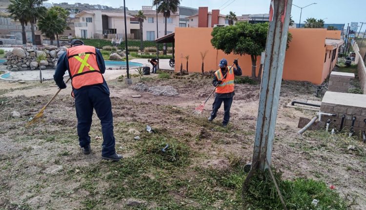 Playas de Rosarito.- El Gobierno Municipal que encabeza Araceli Brown Figueredo, continúa con las actividades de limpieza y mantenimiento de las áreas de uso comunitario a través de la Secretaría de Administración y Servicios Urbanos.