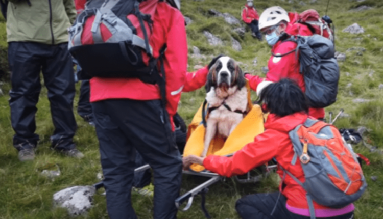 Inglaterra.- 16 brigadistas de Wasdale Mountain Rescue lograron rescatar a Daisy, una perrita San Bernardo que había colapsado cuando descendía de la cima de Scafell Pike, en el condado de Cumbria, al no poder continuar su camino en la montaña más alta de Inglaterra, con 978 metros sobre el nivel del mar, que está dentro del Parque Nacional del Distrito de los Lagos el pasado viernes 24 de julio.