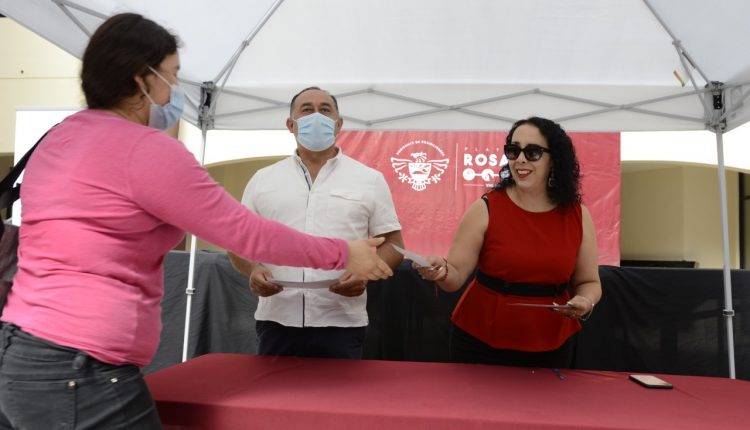 Playas de Rosarito.- La Presidente Municipal, Araceli Brown Figueredo, encabezó un acto en el cual se hizo entrega de cheques con apoyos económicos en beneficio de 61 familias en condiciones de vulnerabilidad por la pandemia de Coronavirus; en total se repartió un monto de 72 mil 650 pesos.