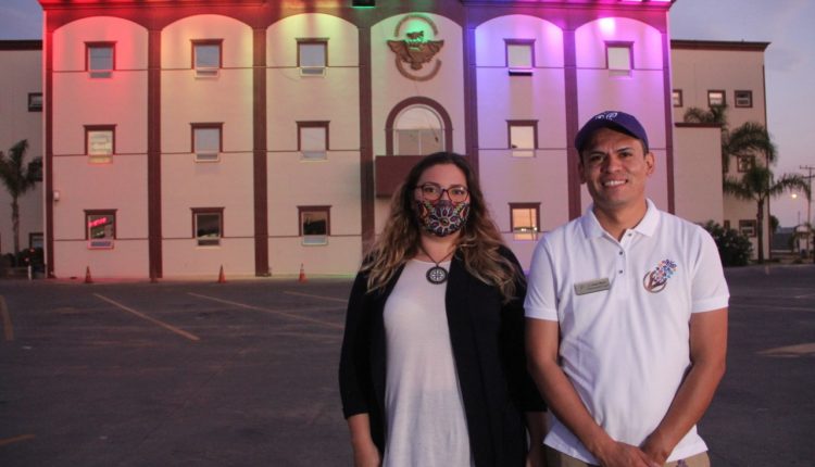 Playas de Rosarito B.C.- El instituto Municipal de la Mujer en colaboración y apoyo con la asociación civil “Centro de Integración y Recuperación Jardín de las Mariposas”, realizaron durante la noche de este viernes 14 de agosto del 2020 la iluminación de la fachada de la casa municipal de Rosarito en apoyo a la comunidad LGBTI.