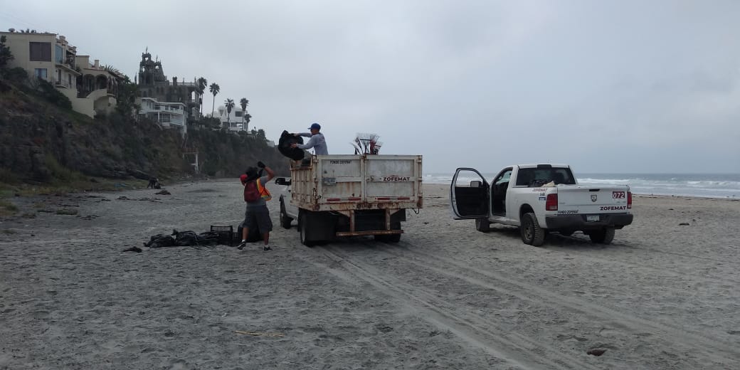 Playas de Rosarito, B. C., martes 25 de agosto de 2020.- Pese a las restricciones impuestas por el Gobierno de Playas de Rosarito, que encabeza Araceli Brown Figueredo, derivadas de la presente pandemia generada por el Covid-19, a través del Fondo de la Zona Federal Marítimo Terrestre (ZOFEMAT), en coordinación con brigadas del programa PATEM, realizan un jornada permanente de limpieza, esto por la basura que generan las personas que visitan las playas.