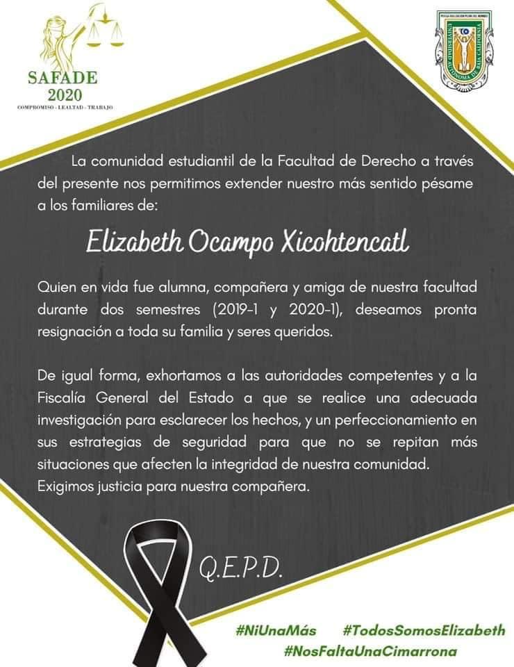 La mujer localizada vestía pijamada de cuadros azules y una sudadera color cielo, días después la misma madre de la menor confirmó que se trataba de su hija Elizabeth Ocampo Xicohtencatl desaparecida días antes.