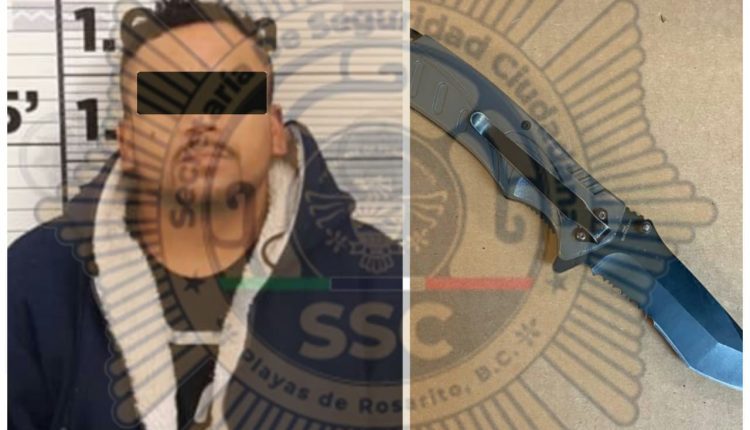 Playas de Rosarito, B. C.- Agentes municipales durante la madrugada de este jueves, turnaron ante la Fiscalía General del Estado a un sujeto que además de ser señalado como probable responsable de abuso sexual a una menor de edad, portaba un arma blanca.