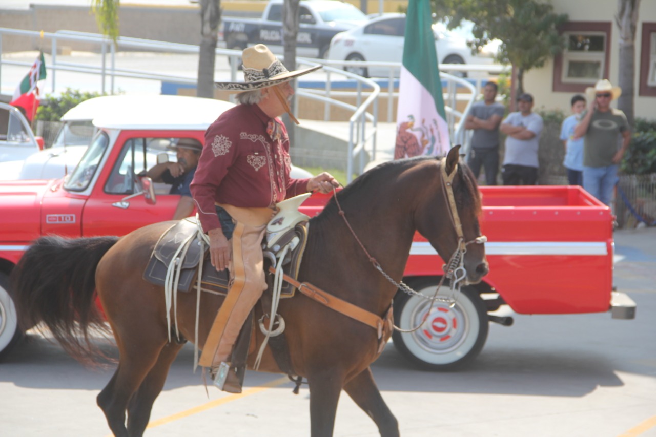 Playas de Rosarito B.C.- De manera simbólica con únicamente algunos funcionarios municipales, caballos, carros de exhibición, unidades policíacas y de bomberos, se llevó a cabo un pequeño desfile en conmemoración al día de la independencia en Rosarito.