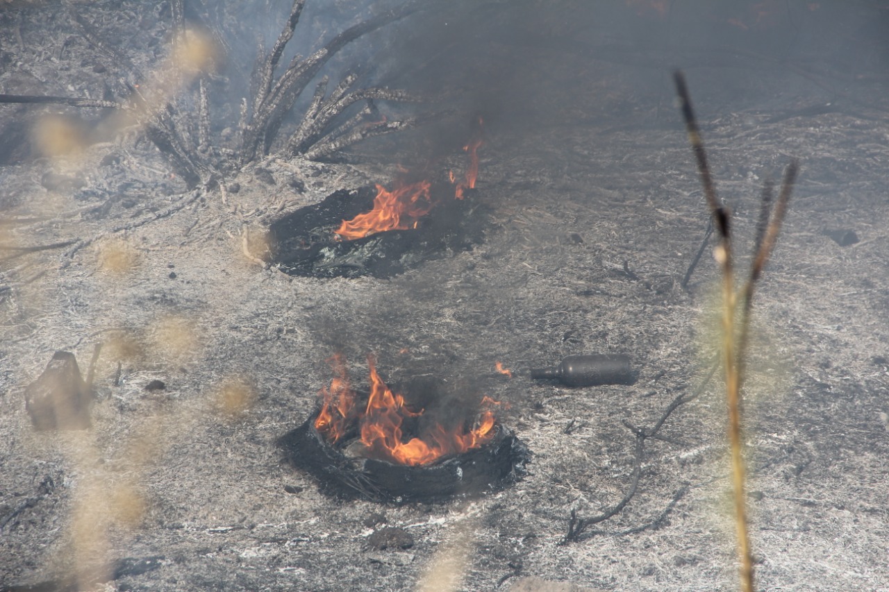 Las fuertes llamas hasta esta tarde no han sido controladas, las cuales no amenazan hasta el momento viviendas, únicamente son hectáreas de pastizales.