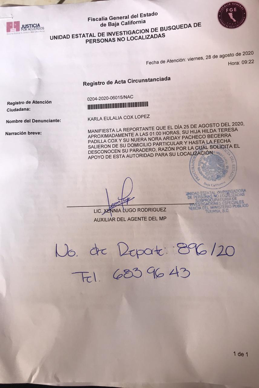 Edad 25 años, tez blanca, estatura 1,61, ojos verdes, tiene Brackets, cabello largo ondulado, rubio claro, lunar en brazo derecho en forma de mancha.