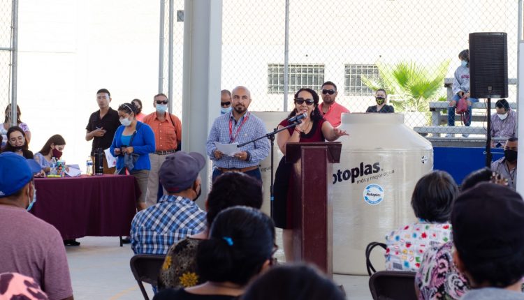 Playas de Rosarito, Baja California. – La Presidente Municipal de Playas de Rosarito, Araceli Brown Figueredo, encabezó este día la segunda entrega de tinacos para conservación de agua potable; esta ocasión fueron 121 unidades en beneficio de vecinos de diversas comunidades.