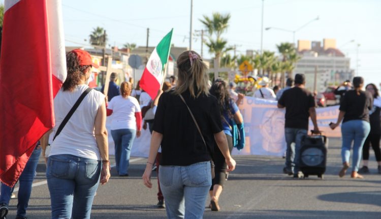 Playas de Rosarito B.C.- Con frases de ¨Vivos se los llevaron, vivos los queremos¨, ¨Queremos justicia¨, padres, amigos y conocidos de los diversos desaparecidos en el municipio marcharon para exigir justicia y la pronta localización de un integrante de su familia.