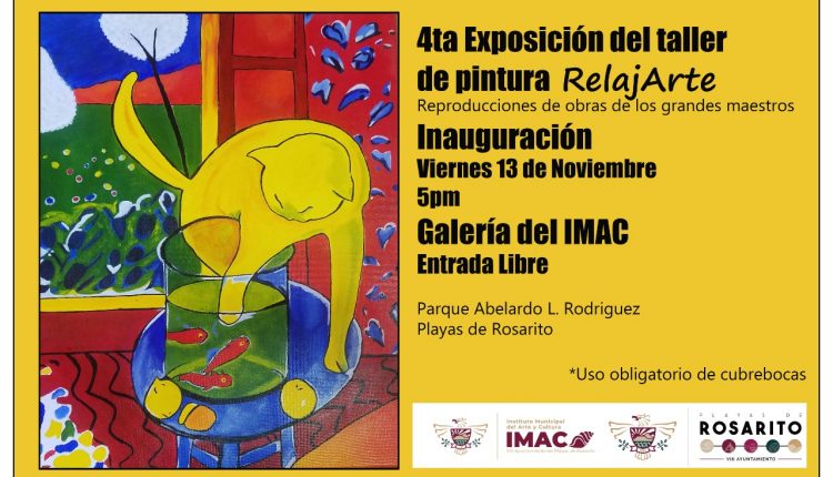 La cuarta exposición de arte del taller RelajArte será en la Galería del IMAC ubicado en el “Parque Abelardo L. Rodríguez” de la Zona Centro, a partir del viernes 13 de noviembre de 2020, donde el ingreso será gratuito aunque el cupo es limitado.