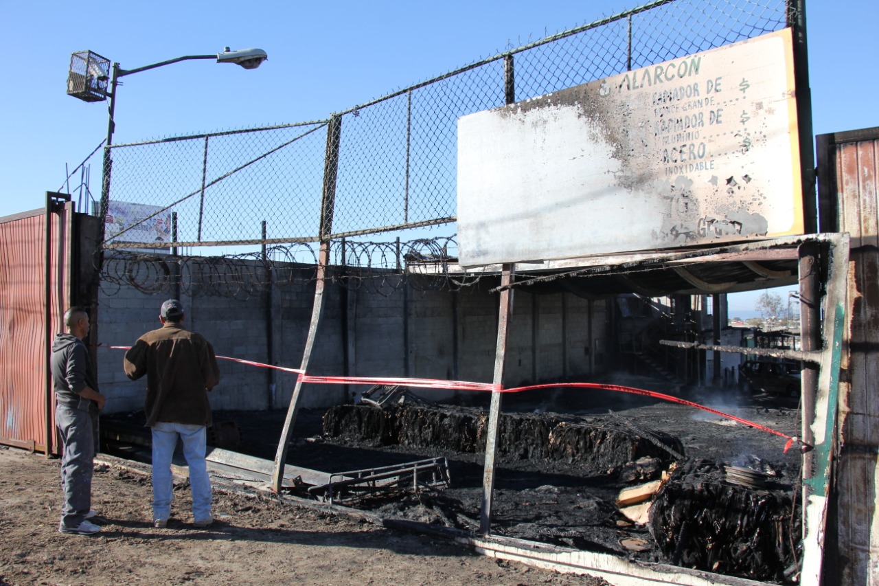 Playas de Rosarito B.C.- Durante la madrugada de este viernes cerca de las 3:30am se reporto un fuerte incendio, esto en la recicladora Alarcon ubicada sobre la calle José Haroz de la colonia Lucio Blanco.