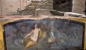 Con una imagen de una Nereida montada en un caballito de mar, el sitio había sido excavado parcialmente en 2019, ahora vuelve a emerger en su totalidad, con otras ricas naturalezas decorativas, residuos de alimentos, huesos de animales y víctimas de la erupción.