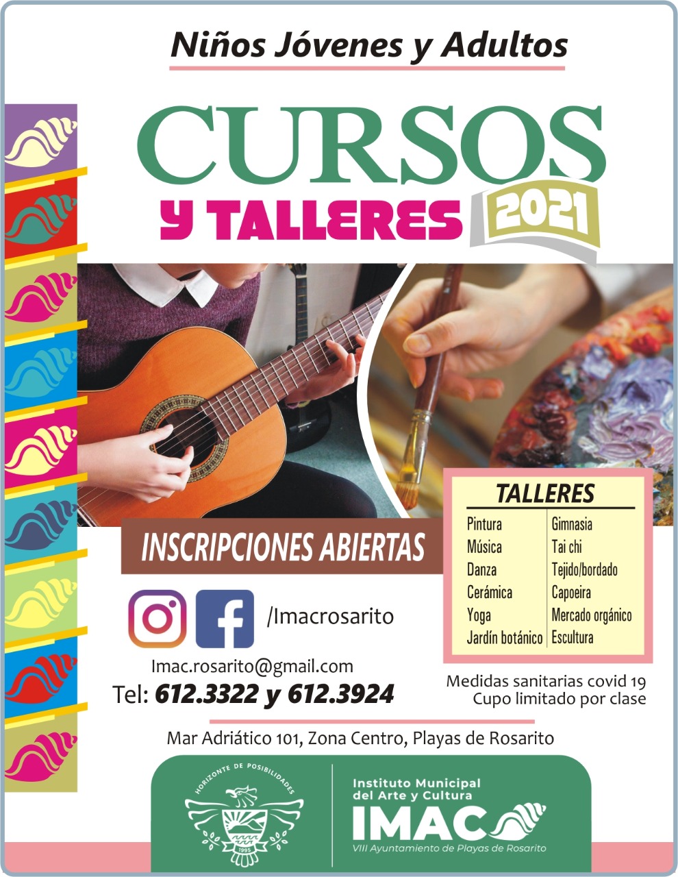 Playas de Rosarito.- Por medio del Instituto Municipal de Arte y Cultura (IMAC), en coordinación con el Archivo Histórico de Playas de Rosarito, invita a los ciudadanos a participar en los cursos, talleres y diversas convocatorias programadas para este año 2021.