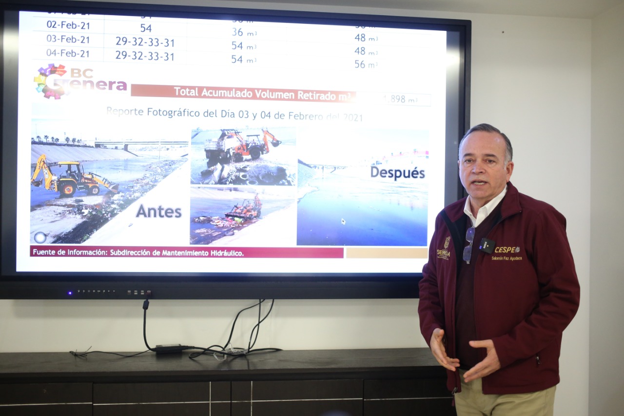 Con respecto al mantenimiento constante de la canalización del Río Tijuana, dijo que en este mes de febrero se han limpiado las seis salidas de las compuertas de esta infraestructura y que se limpiaron entre 48 y 56 metros cúbicos por día.
