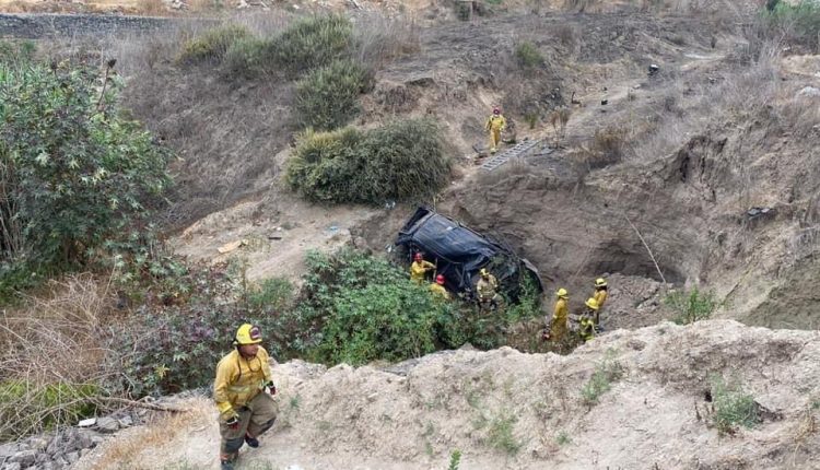 Al llegar elementos de la policía municipal, paramédicos y bomberos, localizaron un vehículo Chevrolet Tahoe, el cual se encontraba volcado en un barranco a un costado de la carretera que conduce a Rosarito.