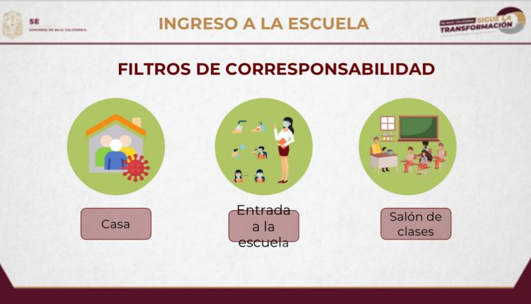 Se instalarán dos filtros para el ingreso de los menores al aula, el primero llevado a cabo por un comité participativo, el cual estará integrado por maestros y padres de familia, los cuales tomarán la temperatura de los menores, aplicarán gel y recolectarán una carta compromiso de corresponsabilidad firmada por los padres, además de que, si detectan un caso sospechoso, el menor será aislado.