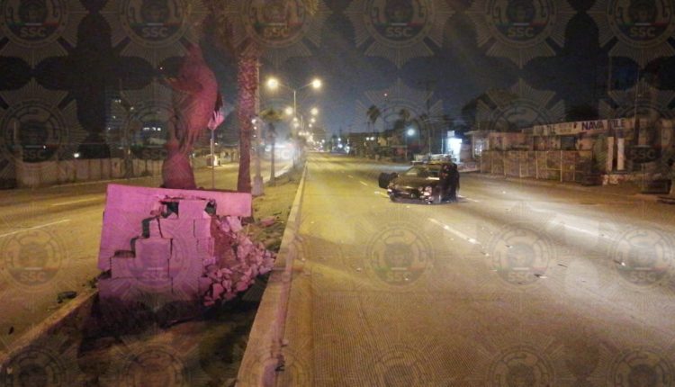 El exceso de velocidad fue el motivo por el cual el conductor perdiera el control ocasionando que el vehículo subiera al camellón central e impactándose contra un objeto fijo con base de concreto sobre la cual se encuentra una escultura metálica en forma de águila propiedad del Ayuntamiento.