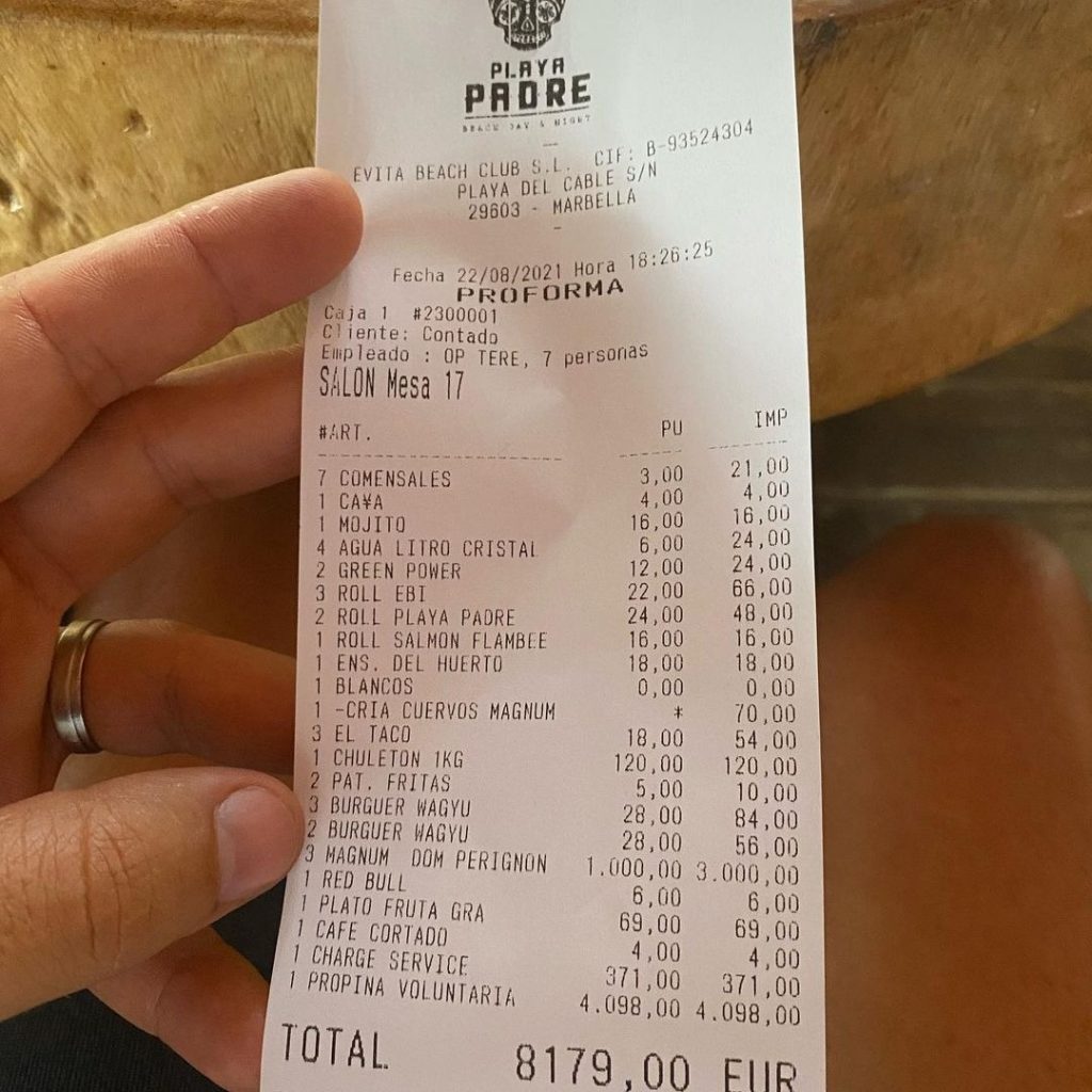 Anteriormente, Castañeda tuvo conocimiento de la queja que expuso en redes sociales un cliente, que hizo viral la factura del local, alegando que le habían pedido propina a pesar de haber gastado en la cena 4.098 euros, de los que 372 (437 dólares) correspondían al servicio en mesa.