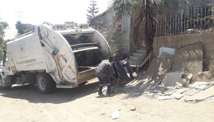 Playas de Rosarito, B.C.; viernes 3 de septiembre de 2021.- Brigadas de la Secretaría de Desarrollo y Servicios Urbanos (SDSU) atienden los reportes de la ciudadanía en materia de tiraderos y basureros irregulares.