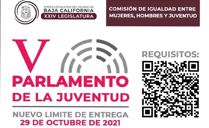 Playas de Rosarito, 25 de octubre de 2021.- En atención a las indicaciones de la Presidente Municipal Araceli Brown Figueredo, por medio del Instituto Municipal de la Juventud de Playas de Rosarito (IMJUVER) se recuerda a los interesados que este viernes 29 de octubre finaliza el plazo para registrarse y poder participar en la quinta edición del evento “Parlamento de las Juventudes del Estado”.