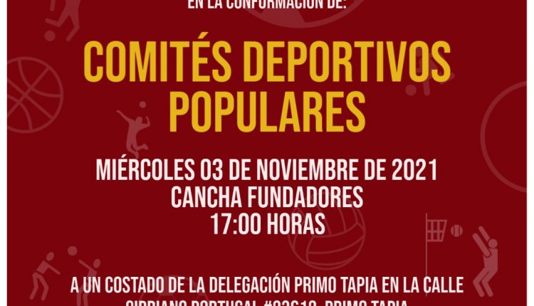 Playas de Rosarito, 27 de octubre de 2021.- El IX Ayuntamiento de Playas de Rosarito, que encabeza la Presidente Municipal Araceli Brown Figueredo, invita a la comunidad de la delegación Primo Tapia a participar en la conformación de los “Comités Deportivos Populares”.