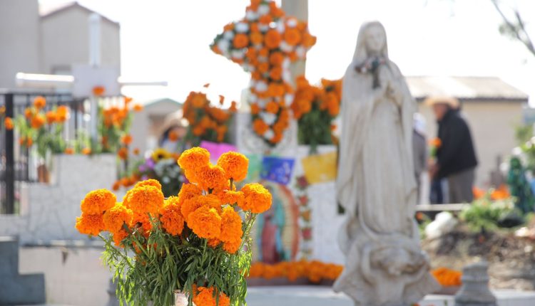 Playas de Rosarito, 2 de noviembre de 2021.- El color naranja y el olor característico del incienso se hace presente en la mayoría de las tumbas del panteón municipal de Rosarito.
