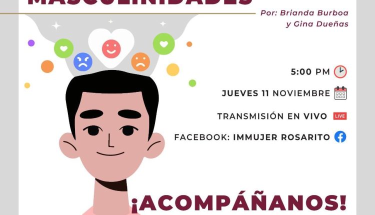 Playas de Rosarito, 10 de noviembre de 2021.- En cumplimiento a las instrucciones de la Presidente Municipal Araceli Brown Figueredo, que ha instruido realizar acciones para fomentar la participación ciudadana y divulgar la cultura de la legalidad, justicia y seguridad, por medio del Instituto Municipal de la Mujer de Playas de Rosarito (IMMUJER) invita a la ciudadanía a participar en una plática sobre “Nuevas Masculinidades”.