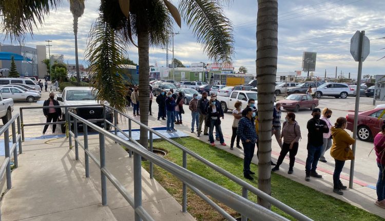 Largas filas en vacunación en Rosarito