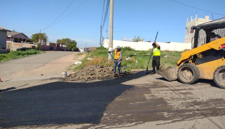 Personal del IX Ayuntamiento trabaja con material de mejora, como es la aplicación de asfalto caliente en la calle Ramón Ramírez, en la colonia Constitución.