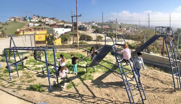 Rosarito, 27 de enero de 2022.- Entre el óxido, laminas cortadas, cadenas amarradas y ente el peligro latente que esto representa, así juegan algunos niños que acuden al centro comunitario en La Ladrillera, colonia al sur de Rosarito.