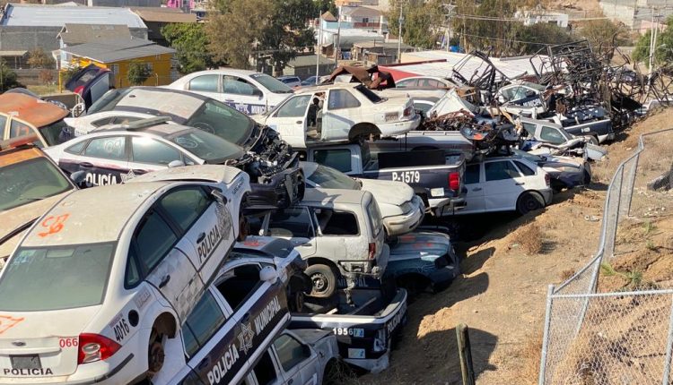 Rosarito, 31 de enero de 2022.- Más de sesenta patrullas obsoletas colindantes a las celdas municipales en la colonia Benito Juárez, se encuentran en proceso de ser retiradas de dicho lugar.