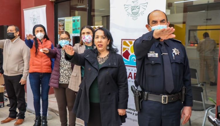 Rosarito, 3 de febrero de 2022.- Araceli Brown Figueredo encabezó hoy una ceremonia en el patio central de la Casa Municipal, con motivo de la celebración, el próximo 5 de febrero, del aniversario 105 de la Constitución Mexicana.